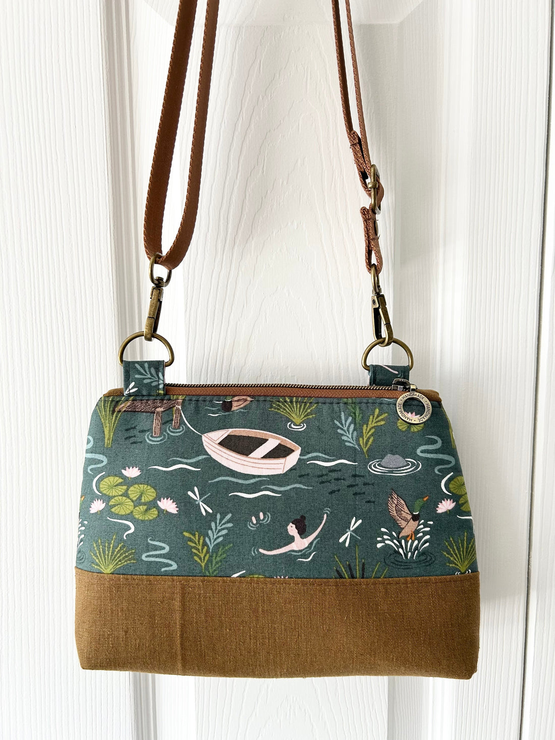 Quick to cut out and assemble, this sweet crossbody bag will be perfect for my upcoming craft markets in the Spring! I used a strong 1" nylon webbing from Country Cow Designs for the shoulder straps instead of sewing fabric ones.