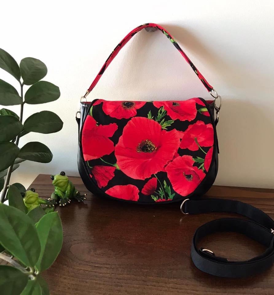 Mitzi of Sew Awesome Creations in Australia went for bold red poppies on the flap teamed up with a very thick black vinyl. "Great easy to follow step by step instructions with lots of pictures makes this a great bag pattern for confident beginners as well as seasoned bag makers".