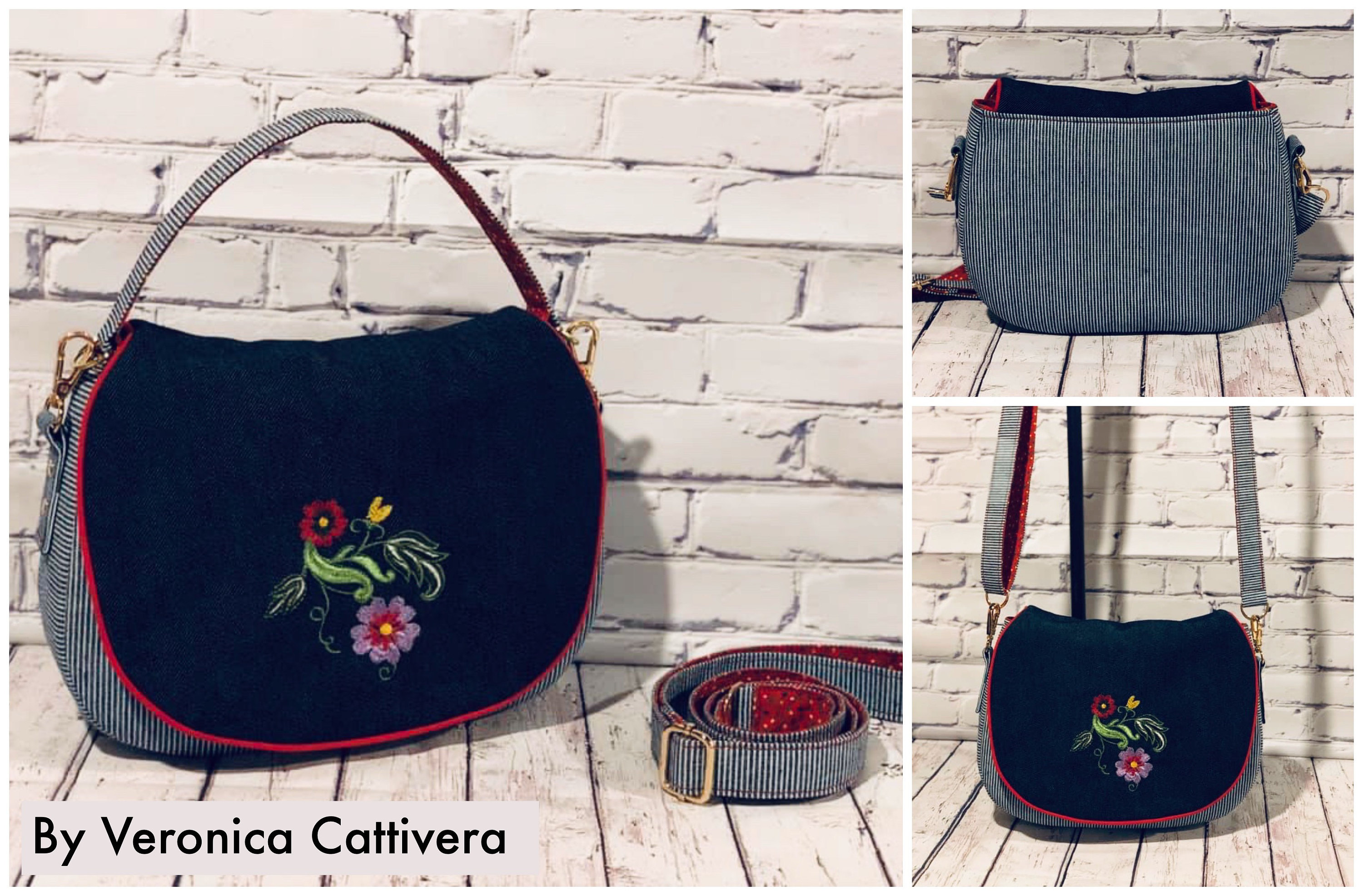 Veronica in Detroit, USA made a darling version of the Serena featuring a beautiful machine embroidered floral design on the flap, a pop of red piping and pinstripes. "I love the pattern. I just got a new embroidery machine and wanted to give it a test. I love the end results."