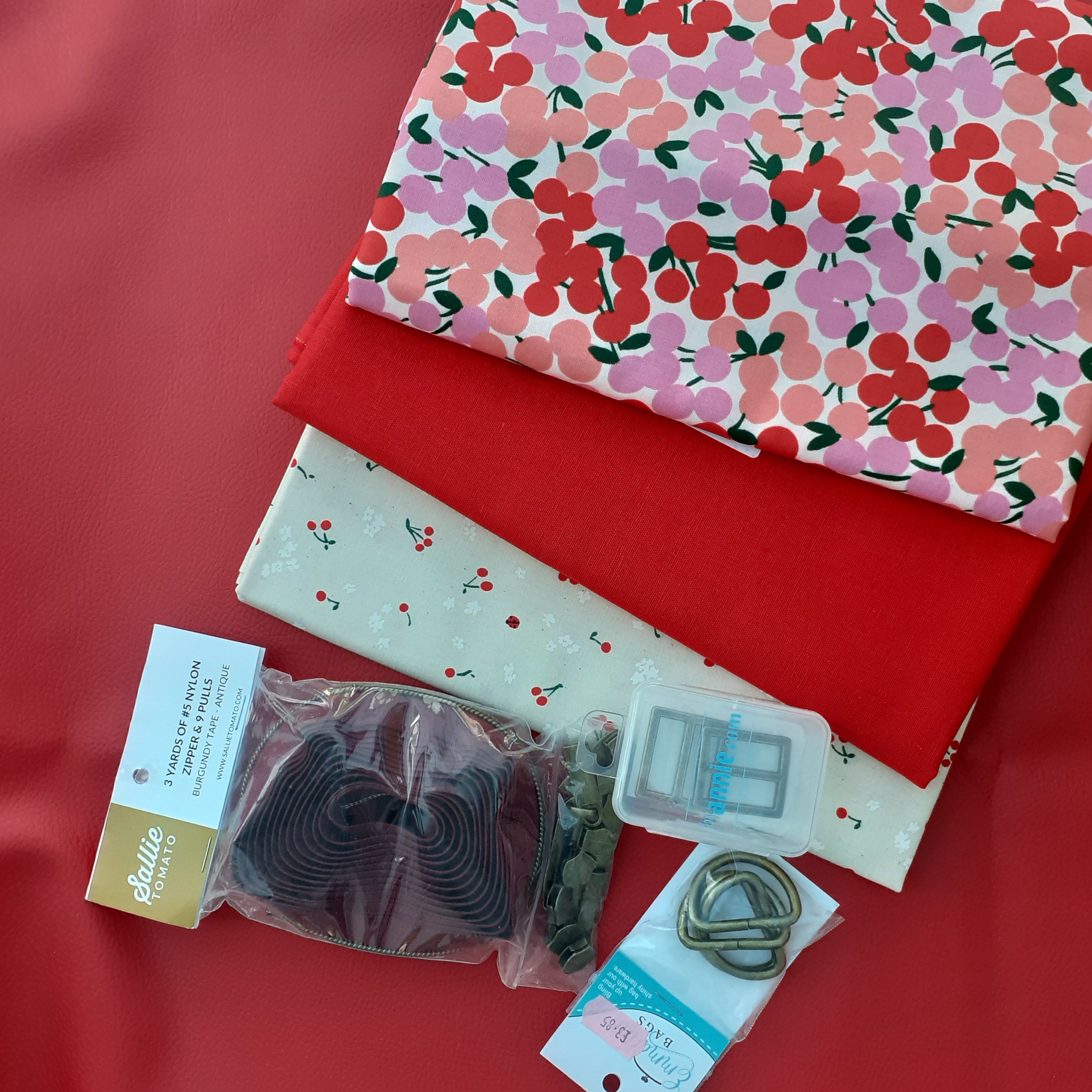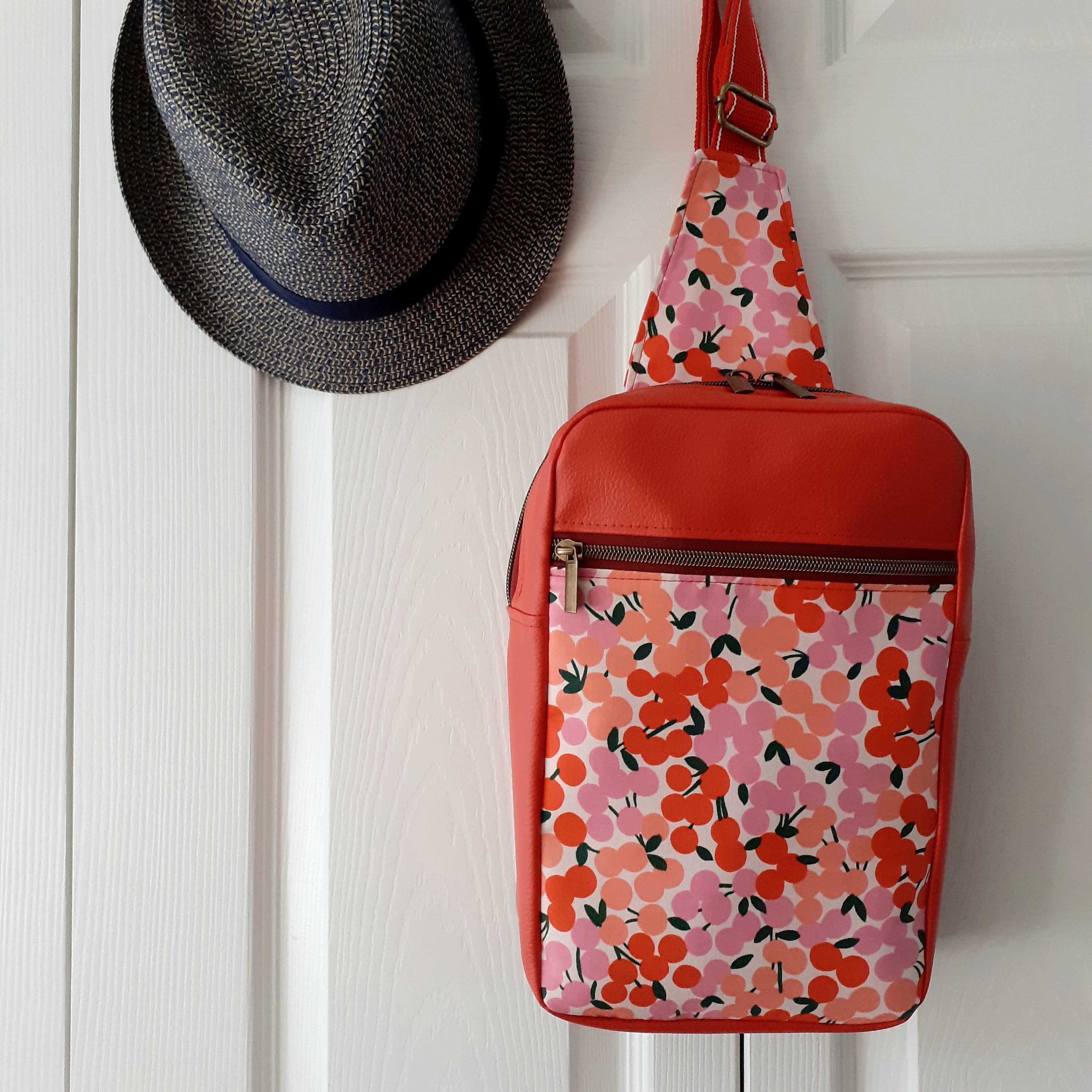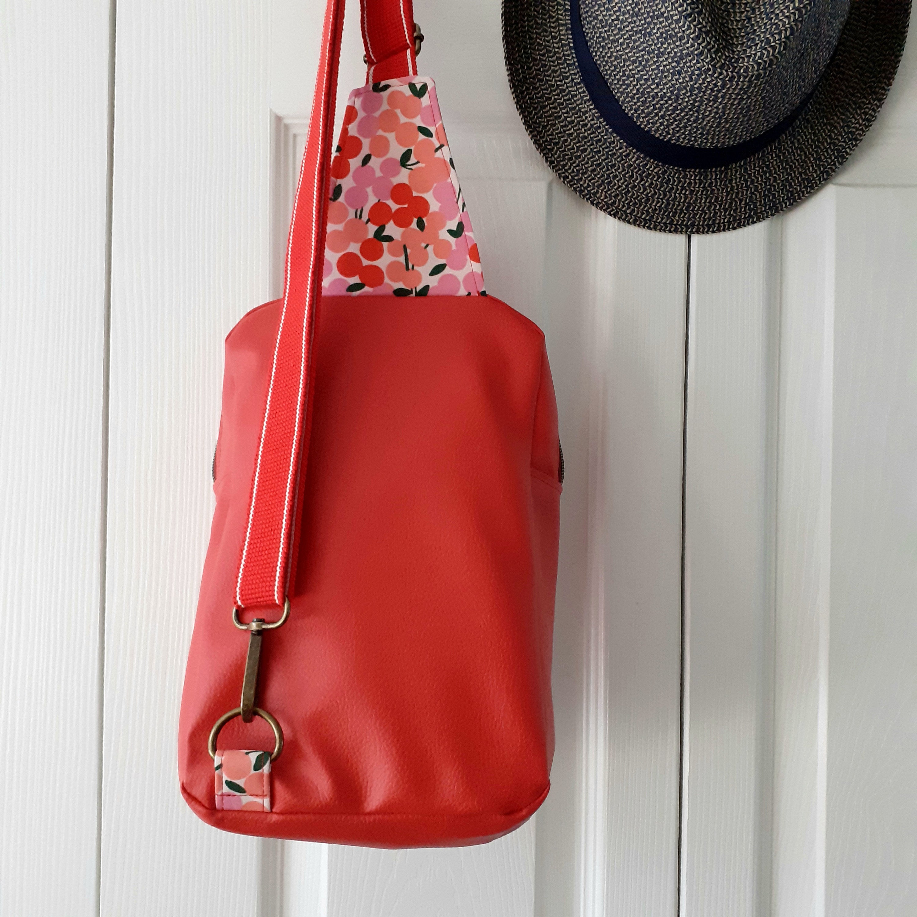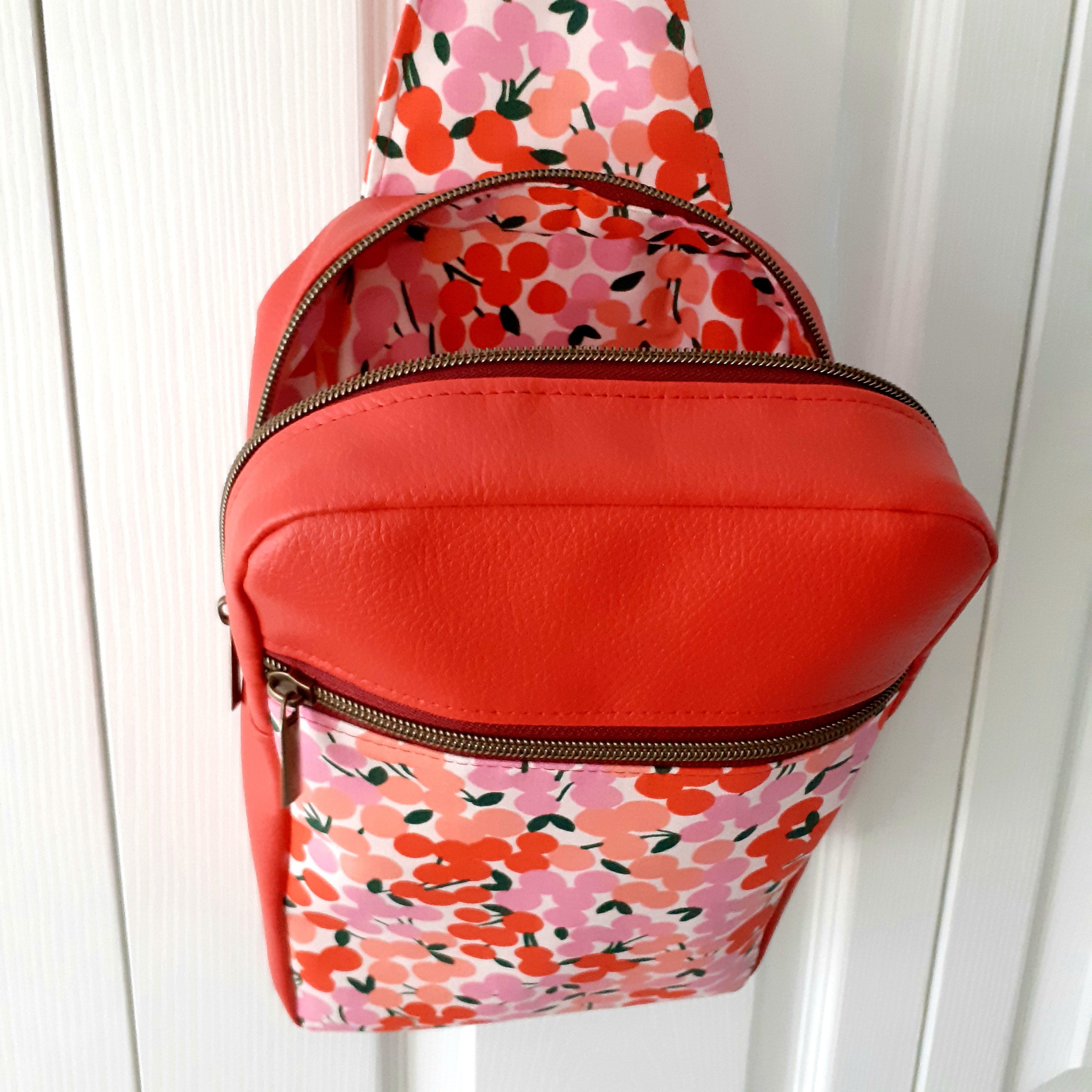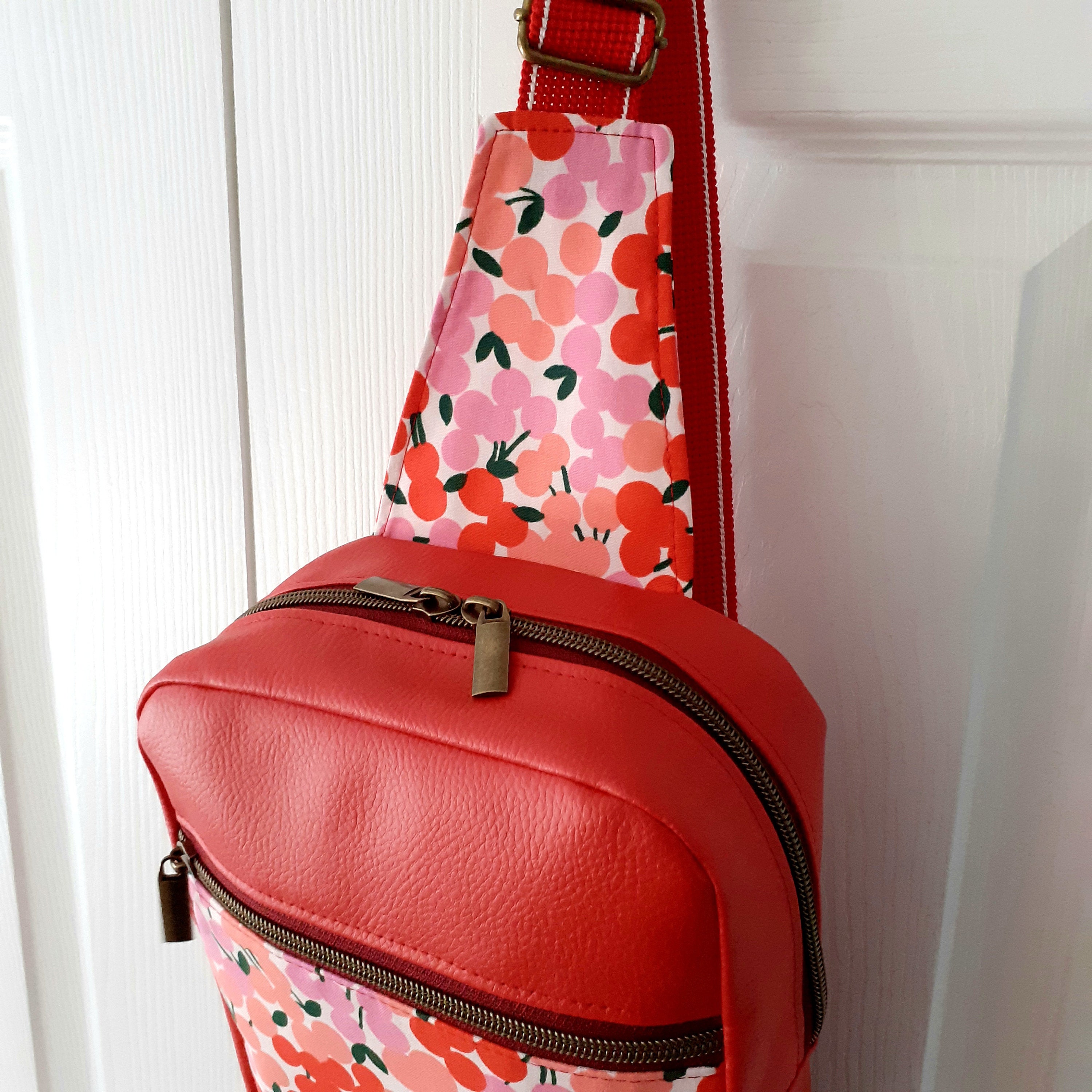 Presenting...the Cherries Sandhill Sling! I absolutely love how this turned out - the tomato red faux leather is a perfect match with the "Cheery Blossom" cherries print and the burgundy zipper tape adds a nice contrast.