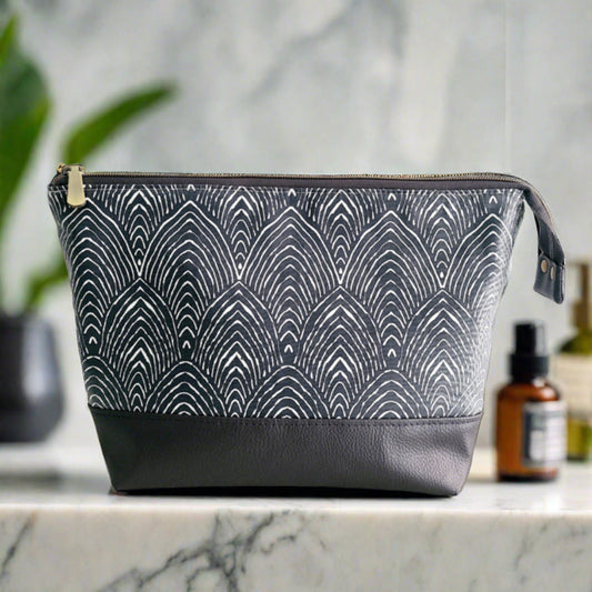 Faux Leather Boxy Toiletry Bag - Dark Grey