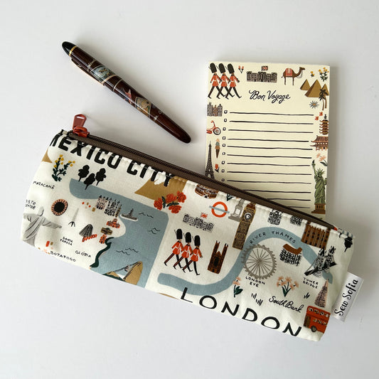 City Maps Long Pencil Case - Mexico City, London, Rio de Janeiro, Cairo